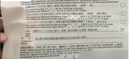 香港“民主党”主席刘慧卿近日前往澳门旅游,被当局以安全理由拒绝入境。曾为香港“占中”分子发声的台湾牙医史书华,计划由台湾飞往澳门旅游,准备过境时被澳门治安警察局扣留,最后当局以“对内部保安稳定构成威胁”为由拒绝史书华入境,并将其即时送返台湾。